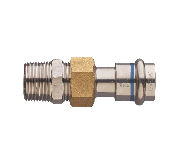 Union F/filetage mâle à joint plat.